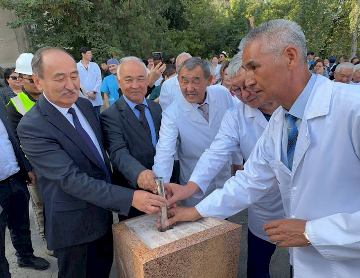 Бүгүн Бишкектеги Улуттук жүрөк хирургиясы жана органдарды трансплантациялоо илимий-изилдөө институтунун базасында Балдар жүрөк хирургия бөлүмүнүн жаңы имаратынын курулушуна капсула салынды.