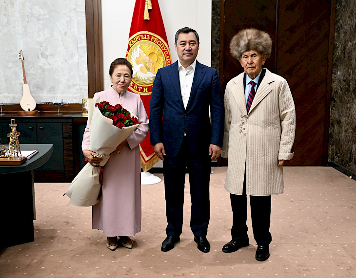 Президент Садыр Жапаров бүгүн, 19-сентябрда, мамлекеттик жана коомдук ишмер, Кыргыз Республикасынын Баатыры Апас Жумагулов жана анын жубайы менен “Ынтымак Ордодо” жолугушту.
