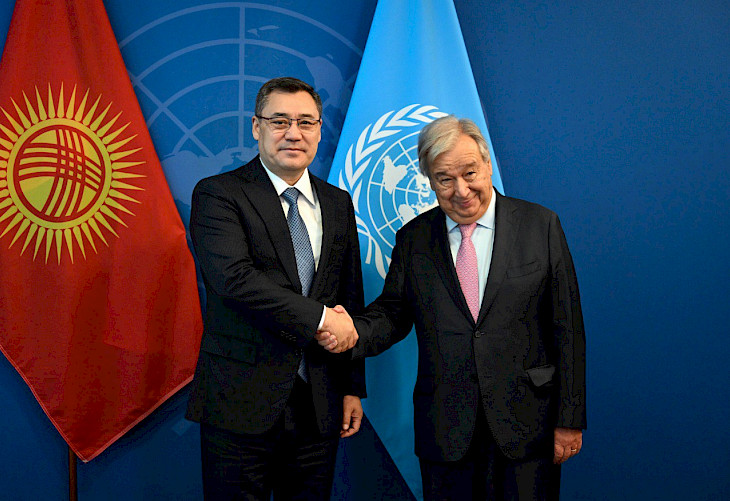 Президент Садыр Жапаров 22-сентябрда АКШнын Нью-Йорк шаарында Бириккен Улуттар Уюмунун (БУУ) Катчылыгынын имаратында БУУнун башкы катчысы Антониу Гутерриш менен жолугушту.