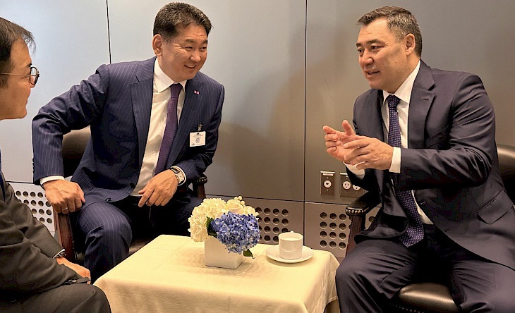 Президент Садыр Жапаров кечээ, 24-сентябрда АКШнын Нью-Йорк шаарында өтүп жаткан БУУнун Башкы Ассамблеясынын 79-сессиясынын Жогорку деңгээлдеги жумалыгынын алкагында Монголиянын президенти Ухнаагийн Хурэлсух менен жолугушту.