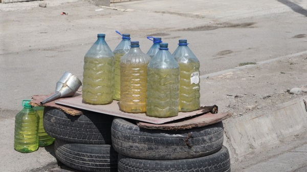 Ал жолдун боюнда желим бөтөлкөгө куюлган бензинди сатат. Калганы унаасынын ичинде сакталат. Күйүүчү май куюлган бөтөлкө азайып калган сайын улам унаасынан алып чыгып толуктап турат. Бекзаттын айтымында, соода жакшы болгон күнү 200 литрден ашык күйүүчү май сатылат. Көчөдөгү соодагерлерден көбүнчө такси айдоочулары сатып алышат.