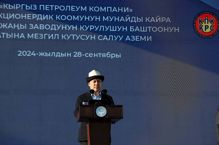 Мамлекет башчысы чогулгандардын алдында сөз сүйлөп, бүгүнкү окуя — өлкөнүн экономикасы үчүн маанилүү окуя экенин белгиледи. Бул долбоорду ишке ашыруу аркылуу Кыргызстандын энергетикалык коопсуздугун камсыздоо менен гана чектелбестен, мунай иштетүү тармагын жаңы деңгээлге көтөрүүгө өбөлгө боло турган олуттуу натыйжага жетишилет.