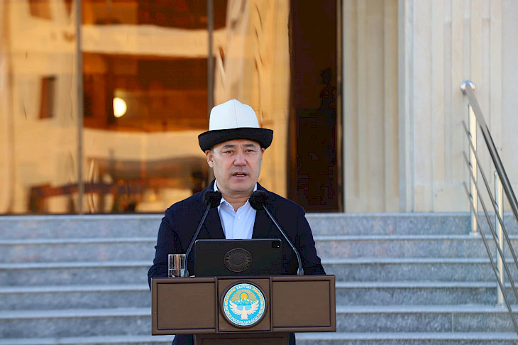 “Биздин эң чоң ресурсубуз билимдүү жаштарыбыз менен сабаттуу элибиз болгондуктан, билим берүү маселелерине өзгөчө көңүл бурабыз жана артыкчылык беребиз. Бүгүн силердин университетиңердеги жаңы окуу корпустары, чынында силер үчүн, силердин сапаттуу билим алышыңар үчүн курулду. Биз тарыхыбызга таазим кылып, Кара-Кыргыз автоном облусунун түзүлгөндүгүнүн 100 жылдыгын белгилеп жатабыз. Мына ошондогу мамлекет түптөөчү аталарыбыздын эң негизги максаты — элинин эркиндиги, билимге умтулуу, эли-журтунун кат-сабатын жоюу болгон. Алар чоң-чоң иштерге билимдин аркасынан гана жетүүгө болоорун аңдап-түшүнүшкөн. Биз мына жаңы Кыргызстанды курууга бет алдык”, — деп Мамлекет башчысы жаштарга кайрылды.