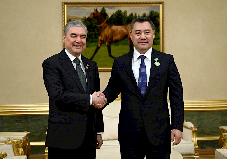 Гурбангулы Бердымухамедов Садыр Жапаров менен жылуу учурашып, түркмөн акыны жана ойчулу Махтумкули Фрагинин 300 жылдык мааракесине арналган “Мезгил менен цивилизациялардын өз ара байланышы — тынчтыктын жана өнүгүүнүн негизи” аттуу эл аралык форумуна катышкандыгы үчүн ыраазычылык билдирди.
