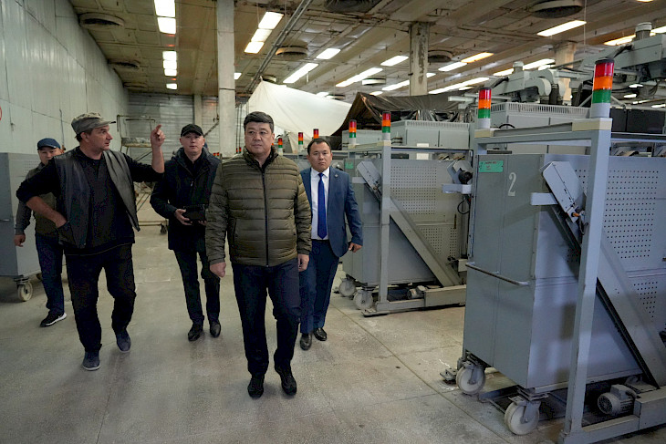 Айыл чарба министри Бакыт Төрөбаев Токмок шаарында «Касиет» камволдук-жип ийрүү фабрикасынын ишмердүүлүгү менен таанышты.
