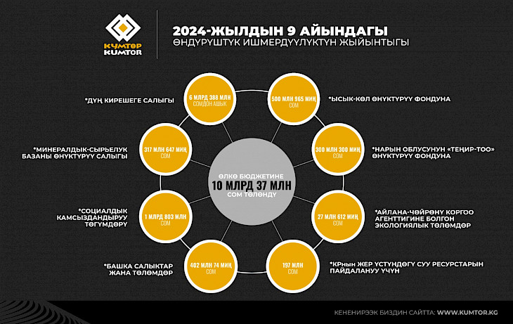Жыл башынан тарта «Кумтөр Голд Компани» жабык акционердик коому мамлекеттик бюджетке салык жана башка төлөмдөр түрүндө 10 миллиард 37 миллион сом төккөн. Бул тууралуу аталган ишканын басма сөз кызматы билдирди.