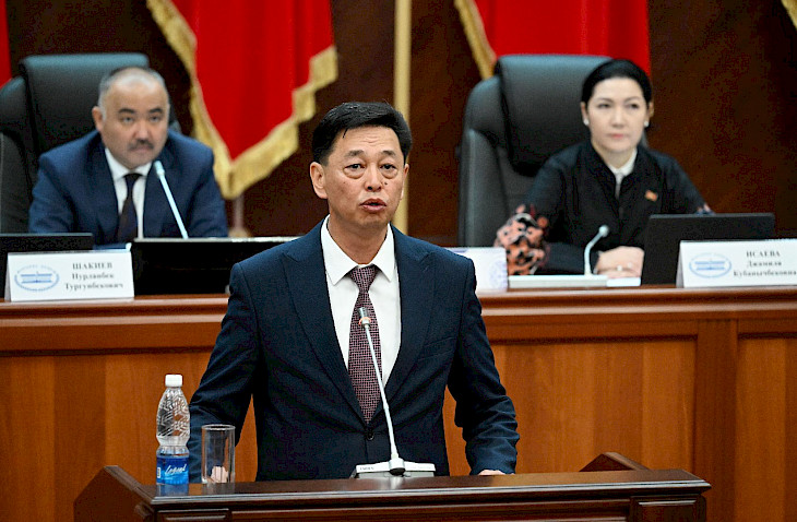Президенттин жана министрлер кабинетинин Жогорку Кеңештеги туруктуу өкүлү Алмасбек Абытов президенттин тиешелүү сунуштамасын тааныштырды.