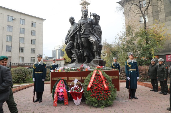 Бишкекте 1999-2000-жылдары эл аралык бандиттик түзүмдөрдү жоюу боюнча аскердик милдетин аткарууда курман болгондорго арналган “Баткен жоокерлери» монументине гүлчамбар коюлду.