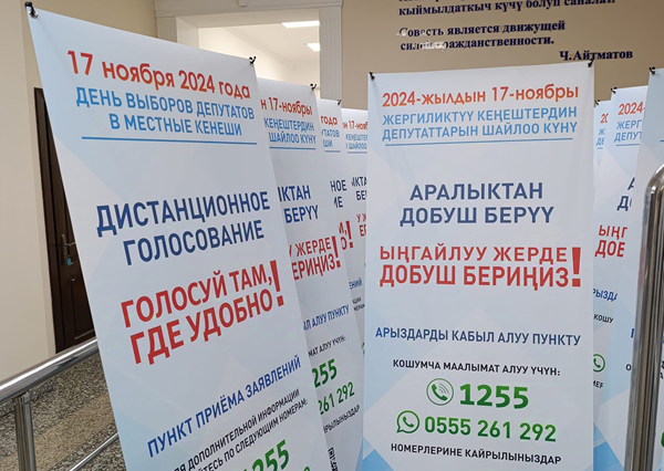 Бишкекте жана өлкөнүн бардык облустук борборлорунда аралыктан добуш берүү үчүн арыздар кабыл алынып жатат. Бул үчүн атайын уюштурулган пункттарда, жети калкты тейлөө борборунда, 10 жогорку окуу жайда жана 10 шайлоо участокторунда атайын кызматкерлер ачык түстөгү жилеттерди кийип, жарандарга арыз берүү боюнча квалификациялуу жардам көрсөтүшөт.