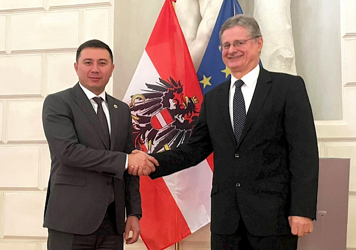 Австриянын Вена шаарында Кыргызстандын финансы министринин орун басары Руслан Татиков Австриянын Федералдык финансы министрлигинин башкы директорунун орун басары Йоханн Кинаст менен жолугушту.