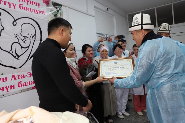 Атайын кызматтан билдиришкендей, Ташиев Нарын облустук бириктирилген ооруканасынын төрөт бөлүмүнө барып, үч эмдин ата-энеси Эрбол Карагулов жана Алтынай Майрамбековага өлкө башчысы Садыр Жапаровдун атынан 500 миң сом акчалай белек жана Нарын шаарынан 3 бөлмөлүү жаңы батирдин тийиштүү документтерин тапшырды.
