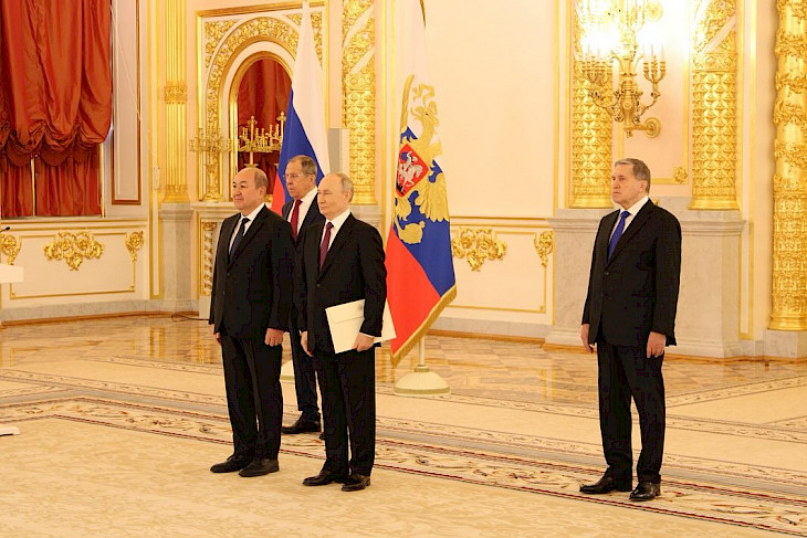Кыргызстандын элчиси Кубанычбек Бөкөнтаев Россия Федерациясынын президенти Владимир Путинге ишеним грамотасын тапшырды.