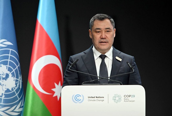 Президент Садыр Жапаров кечээ, 12-ноябрда, Азербайжандын Баку шаарында Бириккен Улуттар Уюмунун Климаттын өзгөрүүсү боюнча Алкактык Конвенциясынын тараптарынын 29-конференциясынын Жогорку деңгээлдеги сегментинде сөз сүйлөдү.