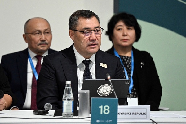 Президент өз сөзүндө климаттын өзгөрүшүнүн кесепеттери бардык өлкөлөрдүн туруктуу өнүгүүсүнө олуттуу коркунуч туудуруп жатканын, ошондуктан климаттык каржылоо темасы өзгөчө мааниге ээ экенин баса белгилеп өттү.