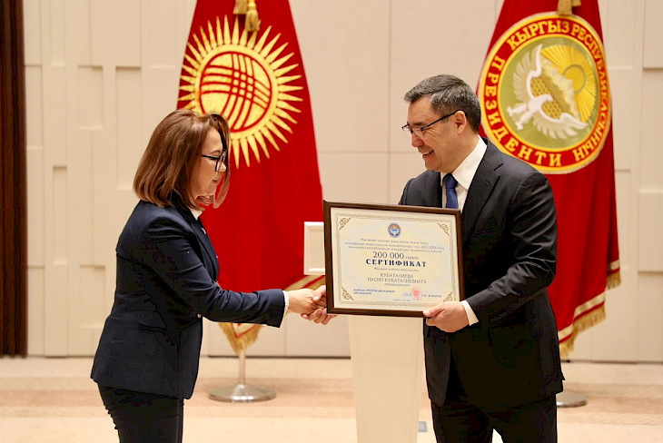 Учурда билим менен маданиятты боюна терең сиңирип, аларды кийинки муунга жайылтууга жан үрөгөн, мындай бийик сапаттары менен интеллигент инсан катары башкалардан айырмаланып турган мугалимдер менен тарбиячыларга ар тараптан колдоо көрсөтүү менен көңүл буруп жатабыз. «Мыкты мугалим», «Мыкты тарбиячы» сынактары мурдатан эле жарыяланып келе жаткан болсо дагы, өлкөдө таланттуу педагогдорду колдоо жана сыйлоо, алардын билим берүүнү өнүктүрүүгө кошкон салымы татыктуу бааланышы үчүн мамлекеттик деңгээлде колдоо көрсөтүү максатында «Мектепке чейинки жана жалпы билим берүү уюмдарынын педагогикалык кызматкерлери үчүн ар жылдык республикалык конкурс өткөрүү жөнүндө» атайын жарлык кабыл алган элем. Буюрса, бул жарлыктын негизиндеги мамлекеттик камкордук жыл сайын уланат.