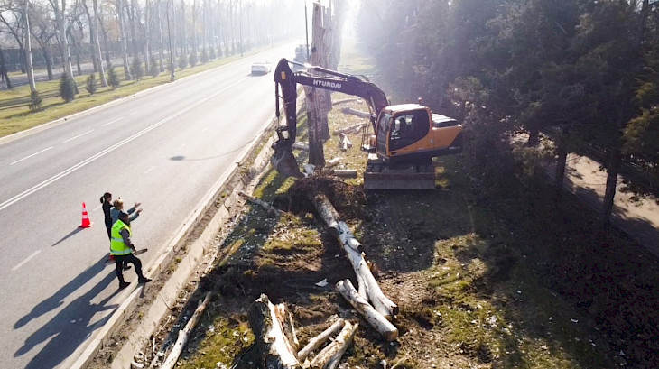 Бишкектин Чыңгыз Айтматов проспектисиндеги теректерди кыюу иштеринин биринчи этабы башталды.