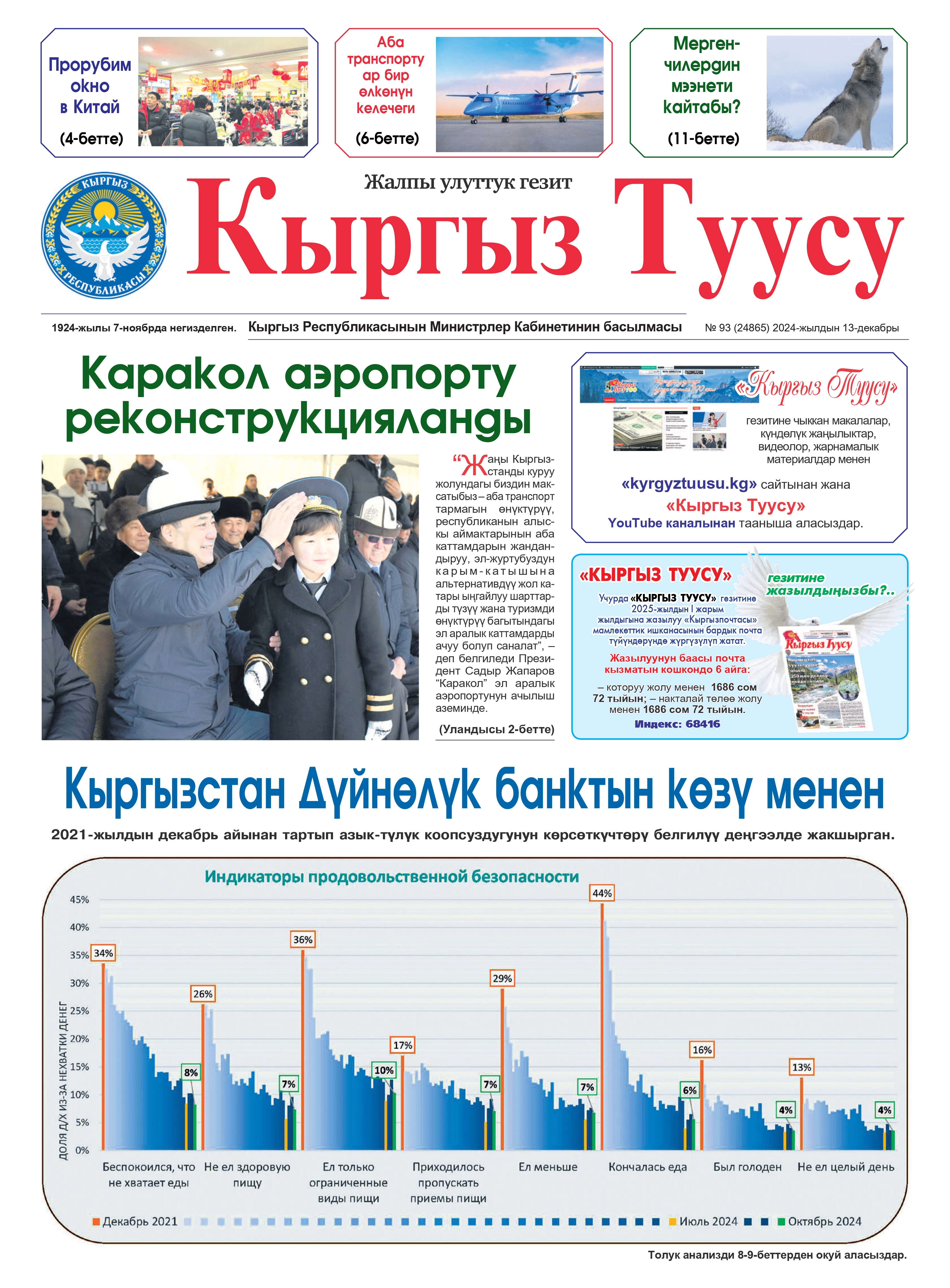 Башкы бетке Рубрикасы жок №93(24865) 2024-жыл 13-декабрь