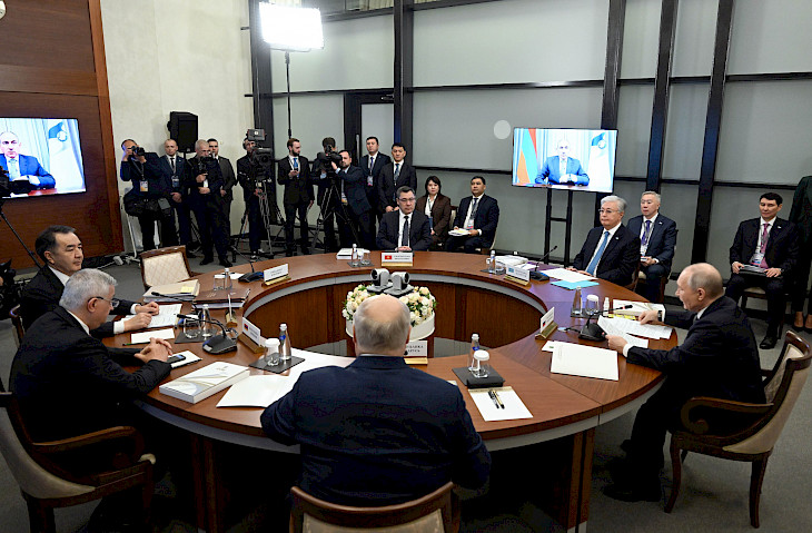 26-декабрда президент Садыр Жапаров Ленинград облусунда Жогорку Евразиялык экономикалык кеңештин жыйынына катышууда. Иш-чарага келген делегация башчыларын Россиянын президенти Владимир Путин тосуп алды.