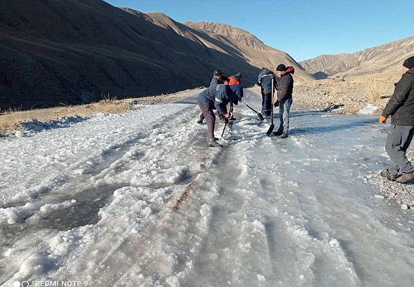 Ал эми Бишкек-Нарын-Торугарт унаа жолунун 290-291-293-чакырым аралыгында суу өтүүчү түтүкчөлөрдөгү муздар кол күчү менен чагылып, жол жээги тазаланып жатат. Кант-АБЗ унаа жолунда кырсыктарды алдын алуу максатында керектүү иштер аткарылууда.