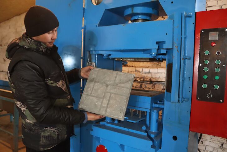 Ишкана полиэтилен баштыгын жана желим бөтөлкөлөрдү ээритип, кум аралашмасы менен брусчатка чыгарат. 5 жаңы жумушчу орун түзүлдү. Бир айда болжолдуу 4500 даана брусчатка чыгарууну пландалып жатат.