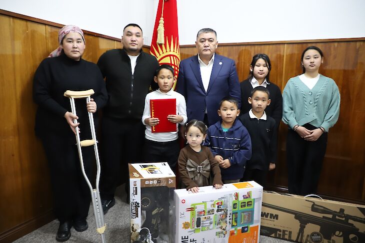 Буга чейин батирде жашап келген үй-бүлөгө УКМК төрагасы 3 бөлмөлүү үйдүн ачкычын тапшырган.