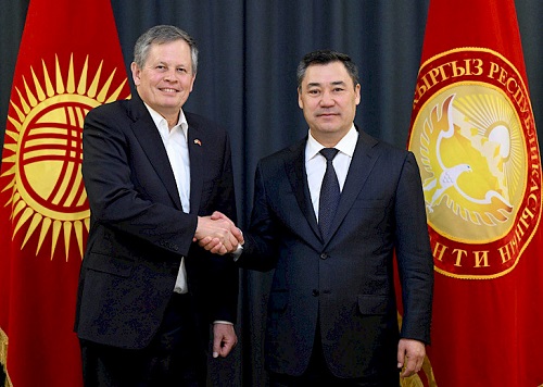 Президент Садыр Жапаров 28-мартта өлкөгө иш сапары менен келген АКШнын сенатору (Монтана штатынан) Стив Дэйнсти кабыл алды.