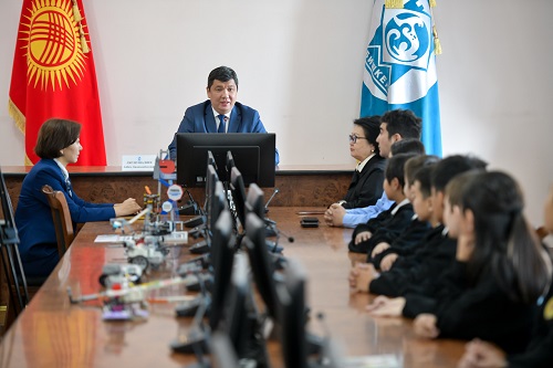 Бишкек шаарынын мэри Айбек Джунушалиев робототехника боюнча эл аралык чемпионаттын жеңүүчүлөрү менен жолугушту.