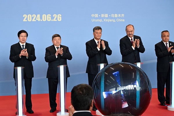 Өз ара саламдашуудан кийин мамлекеттердин делегация башчылары атайын даярдалган “Кытай-Евразия ЭКСПО” павильондорун расмий ачышты.