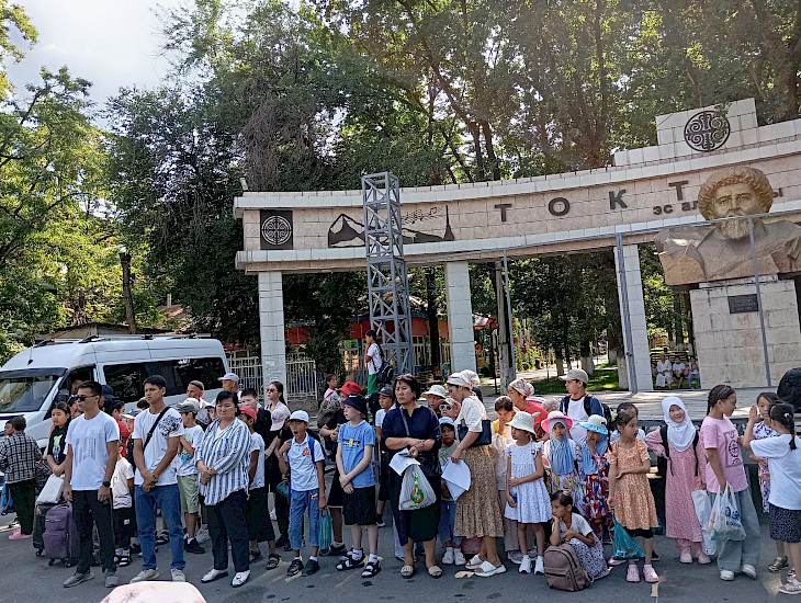 Жалал-Абад шаарындагы аз камсыз болгон, ата-энесинен ажыраган, июнь окуясында жабыркагандардын, чернобыль кырсыгын жоюуга катышкандардын балдарынын бир бөлүгү жайкы эс алуу лагерине жиберилди.