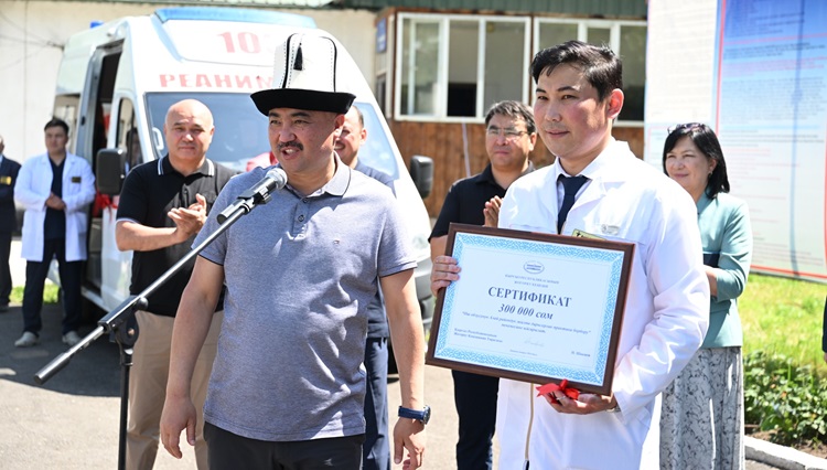 Бүгүн, 8-июлда Жогорку Кеңештин төрагасы Нурланбек Шакиев Алай районундагы Гүлчө айылында жайгашкан ооруканага тез жардам унаасын жана 300 миң сом тапшырды.