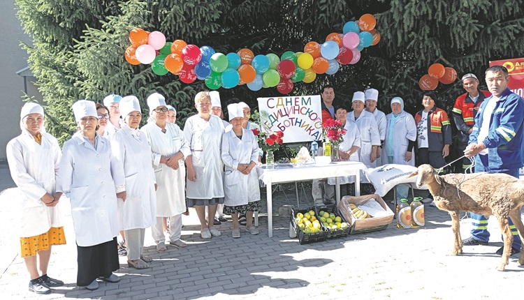 Майрамдык куттуктоо Орловка шаарындагы үй-бүлөлүк дарыгерлер тобунун кызматкерлерин куттуктоо менен башталды. «Алтынкен» компаниясынан кутучалардагы жер-жемиштер, ун, койлор белек катары
