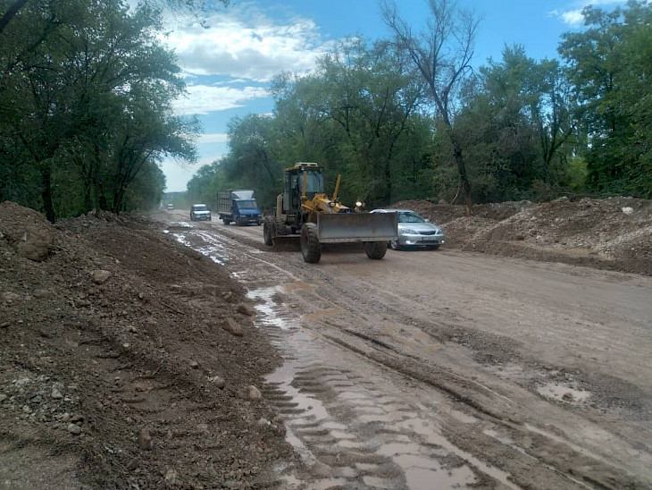 «Ак-Терек – Папан – Кожокелең (1-чакырымы), Ош – Төлөйкөн (7,4 жана 8,5-чакырымы), Топ-Жаңгак – Кара-Суу, Тамаша – Кызыл-Булак (7 жана 16-17-чакырымдар аралыгы), Бишкек – Ош (660-чакырымы), Ош – Баткен – Раззаков (63 жана 57-58-чакырымдар аралыгы), Ош – Сары-Таш – Эркечтам (42-44-чакырымдар аралыгы) жана башка сел жүргөн унаа жолдор тазаланып, каттам берилди. Азыркы тапта бир тараптуу болгон жолдорду кеңейтүү, суу жеп кеткен тилкелерди калыбына келтирүү иштери жүрүүдө”, — деп белгилешти министрликтен.