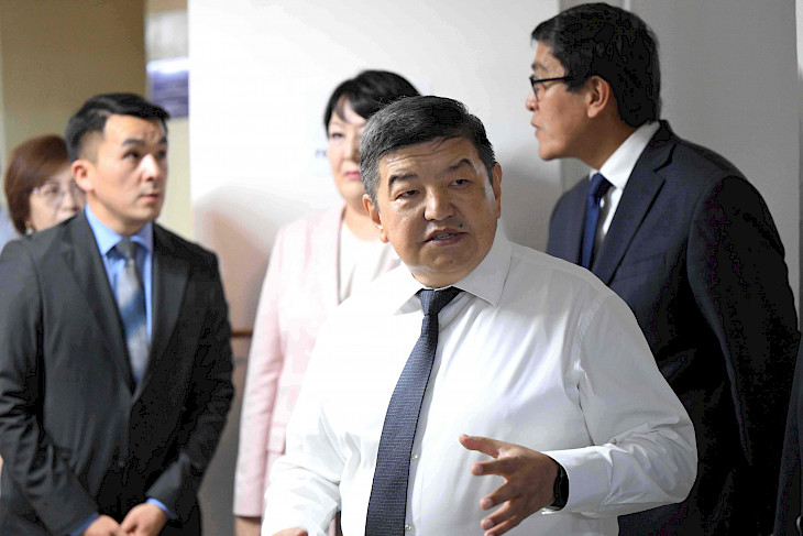 Министрлер Кабинетинин төрагасы Акылбек Жапаров М.Миррахимов атындагы Улуттук кардиология жана терапия борборундагы медициналык илимий кластердин демонстрациялык модели менен таанышты.