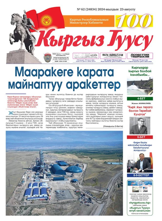 Башкы бетке Рубрикасы жок №62(24834) 2024-жыл 23-август