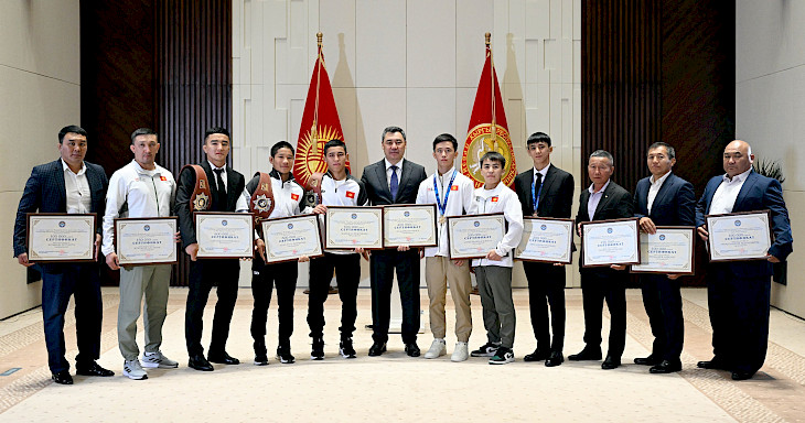 Андан соң мамлекет башчысы дүйнө чемпионатынын байге ээлерине жана алардын машыктыруучуларына акчалай сертификаттарды тапшырды.