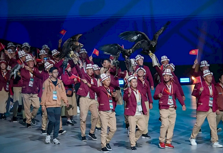 Казакстандын Астана шаарында V Дүйнөлүк көчмөндөр оюндарынын ачылыш аземи болду. Кыргызстандын улуттук курамасы биринчи болуп өттү.
