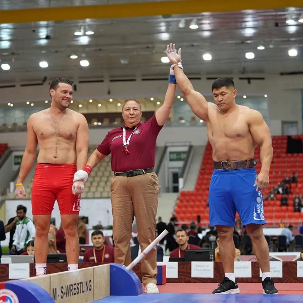 Эркектер арасында +100 кг салмакта Бекболот Токтогонов V Дүйнөлүк Көчмөндөр оюндарынын жеңүүчүсү болду.